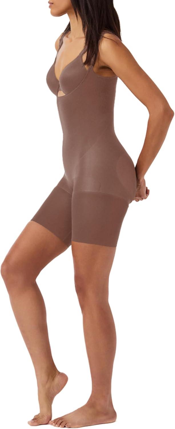 Meet the SPANX Seamless Power Sculpting Open-Bust Mid-Thigh Bodysuit-shapewear designed to transform your figure. This bodysuit for women offers control and comfort, merging innovative design with the freedom to wear your own bra. Every detail, from the open-bust design to the comfortable compression zones, is tailored to provide a sculpting effect while honoring your natural shape.This shapewear bodysuit is constructed to target key areas with comfortable compression. It sculpts your core and thighs and lifts your butt for a perky rear view. The breathable, cling-free fabric ensures that your comfort is never compromised. With its seamless design, this bodysuit remains virtually undetectable under clothes.The adjustable straps offer a customizable fit, adapting to your unique shape and ensuring the bodysuit stays in place all day. Featuring a double gusset for extra ease when nature calls, without the hassle of removing your shapewear.This bodysuit fits true to size. Machine wash cold, gentle cycle. Only non-chlorine bleach when needed. Tumble dry low. Do not iron or dry clean. Made of 88% nylon, 11% elastane, and 1% cotton.SPANX is a brand for women, by women. So, we understand what it feels like to be everything, to everyone, all at once-and needing clothes that can do the same. Our pieces are designed to effortlessly adapt to your busy lifestyle, ensuring you feel confident and comfortable-no matter the occasion. Because we firmly believe when you feel your best, you do your best.