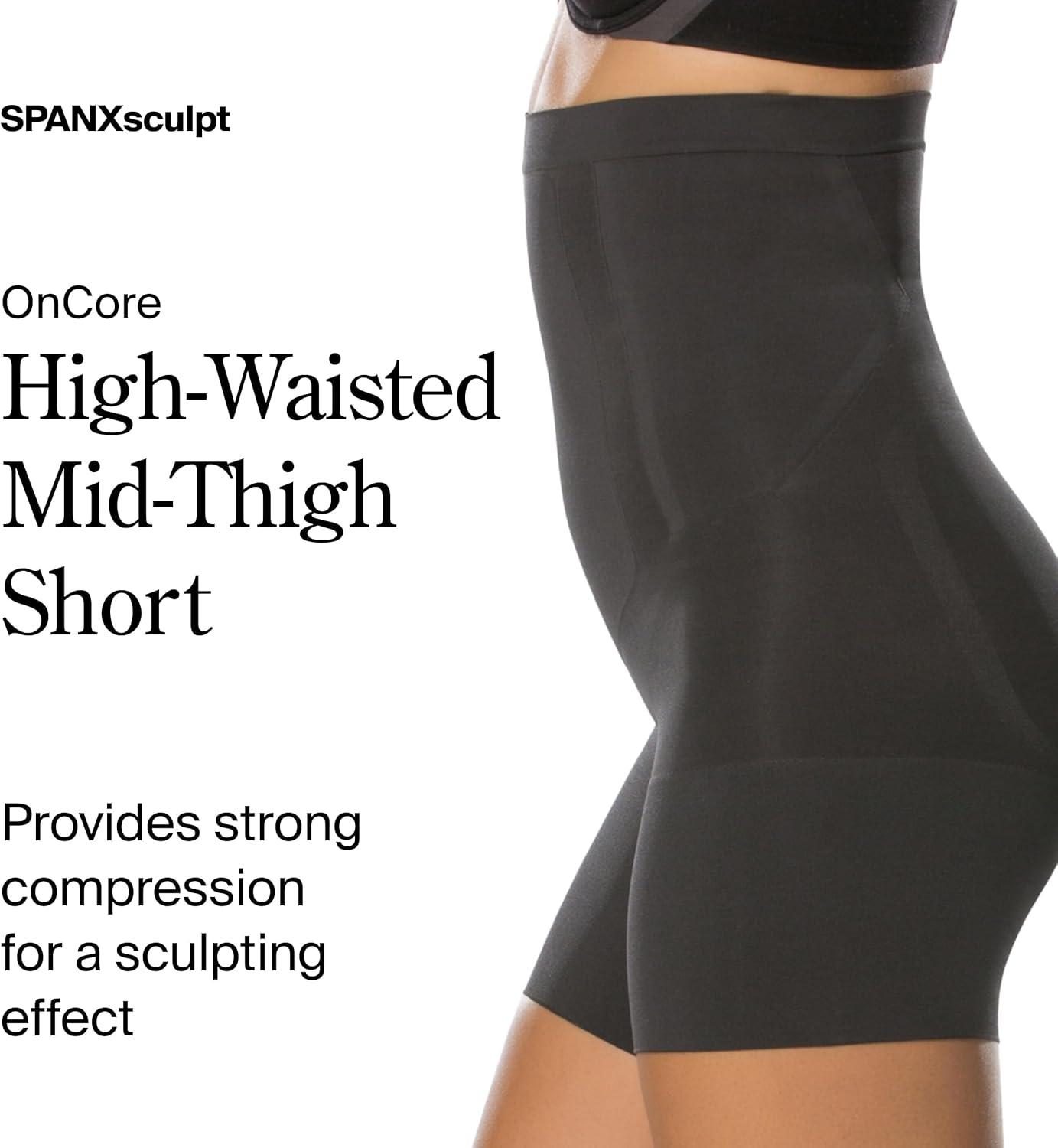 SPANX SPANXsculpt OnCore High-Waisted Mid-Thigh Short – Powerful Sculpting Shapwear for Women – Level 4 Compression – Core Control – Very Black – Medium – Petite