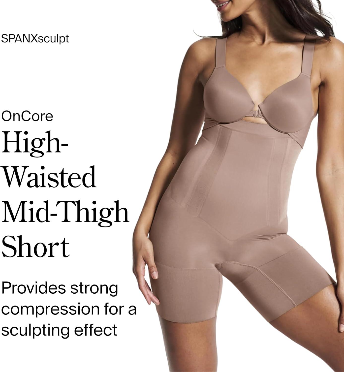 SPANX SPANXsculpt OnCore High-Waisted Mid-Thigh Short – Powerful Sculpting Shapwear for Women – Level 4 Compression(Cafe Au Lait)