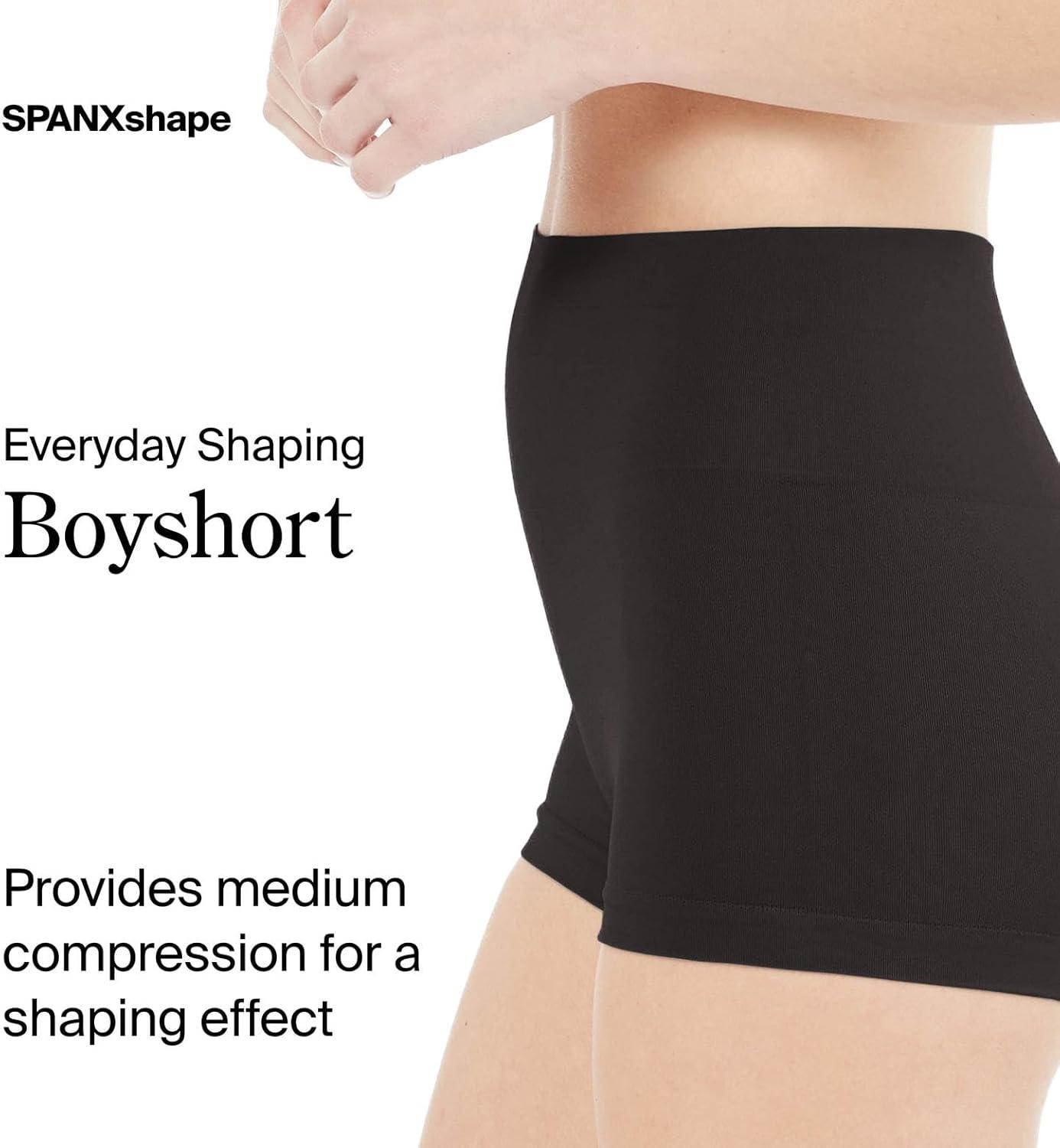 Meet the SPANXshape Everyday Shaping Boyshort—an elegant and comfortable panty. Designed to be undetectable, this shaping boyshort provides the support you crave without compromising on comfort, making it perfect for everyday wear.Thanks to minimal stitching, this panty is invisible under clothes. Crafted with a blend of 89% nylon, 10% elastane, and 1% cotton, this shaping boyshort offers a second-skin fit that moves with you, not against you.The seamless construction ensures that your silhouette remains sleek and smooth, even under the most form-fitting garments. The flat leg opening ensures this panty never rides up, while a hidden shaping waistband offers just enough control for every day.Our targeted waistband technology delivers gentle core control that flattens and flatters without pinching or rolling down, ensuring you feel as good as you look from AM to PM. This shaping boyshort is designed to be breathable.Machine Wash Warm. Only Non-Chlorine Bleach When Needed. Tumble Dry Low. Do Not Iron. Or Dry Clean.SPANX is a brand for women, by women. So, we understand what it feels like to be everything, to everyone, all at once—and needing clothes that can do the same. Our pieces are designed to effortlessly adapt to your busy lifestyle, ensuring you feel confident and comfortable—no matter the occasion. Because we firmly believe when you feel your best, you do your best.