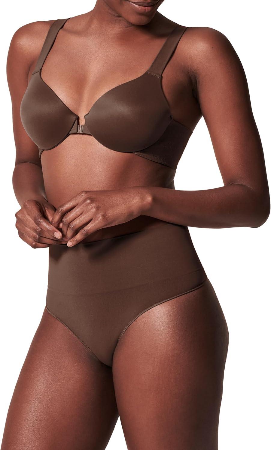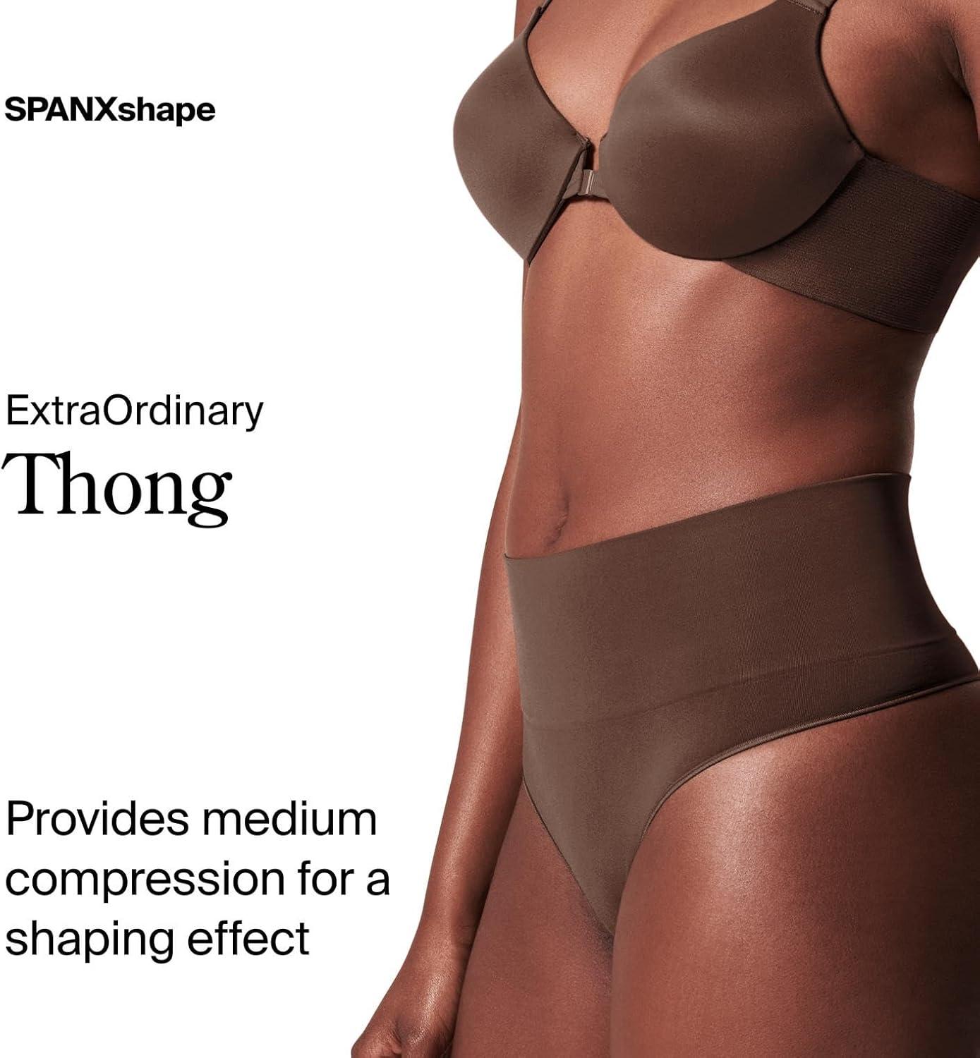 SPANX SPANXshape ExtraOrdinary Thong – Sculpting with Compression – Women’s Shapewear Underwear – Recycled Nylon Fabric Blend-Toasted Oatmeal-Chestnut Brown-M