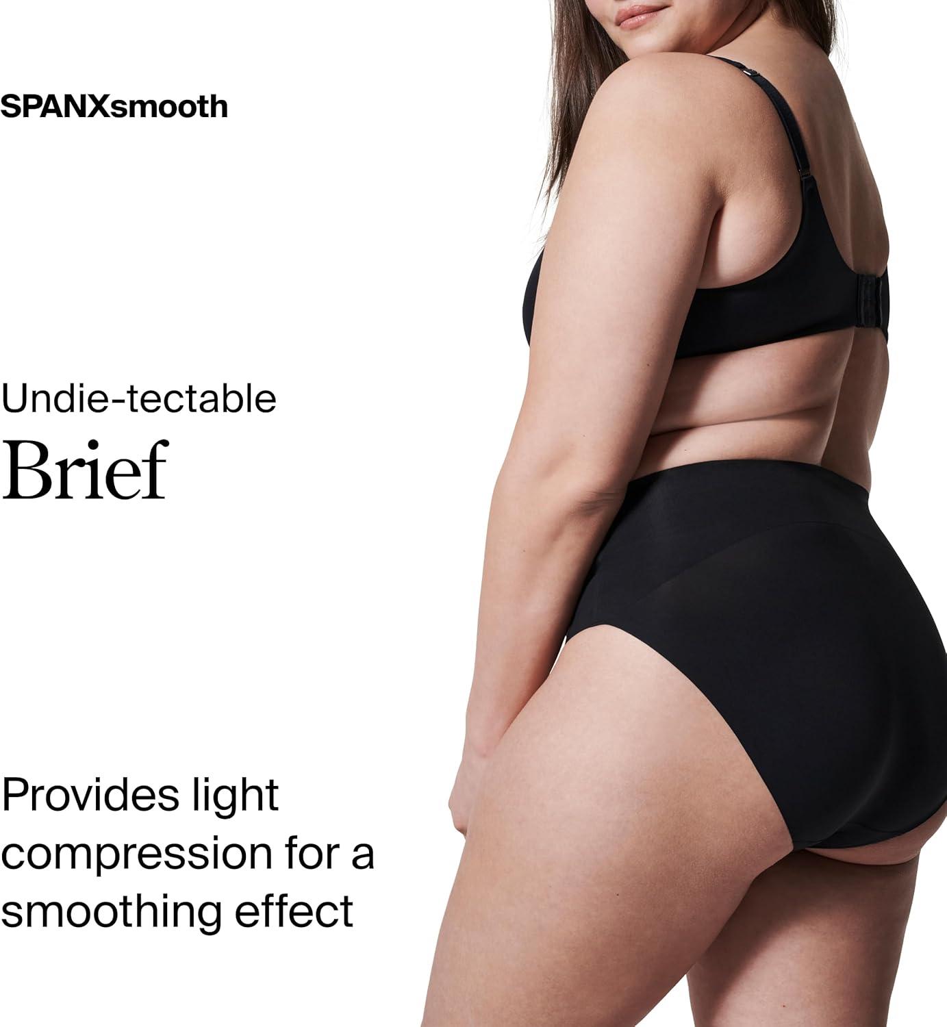 Meet the SPANXsupersmooth Undie-tectable Brief—designed to give you a completely smooth look under your clothes. This core control brief hugs your curves, providing level 2 smoothing that feels like a light hug. Featuring a full coverage front with a full back, this brief gives you your best rear view. The waistband smoothes without squeezing, so you can move with ease and comfort. Say goodbye to visible panty lines as this brief features elastic-free edges for a seamless profile. Made of nylon and elastane, this breathable fabric adapts to your every move, making it the perfect companion for all-day wear. With a 100% cotton gusset, your comfort is never compromised, ensuring you feel fresh all day long. Machine wash cold, gentle cycle. Only non-chlorine bleach when needed. Lay flat to dry. Do not iron or dry clean. SPANX is a brand for women, by women. So, we understand what it feels like to be everything, to everyone, all at once—and needing clothes that can do the same. Our pieces are designed to effortlessly adapt to your busy lifestyle, ensuring you feel confident and comfortable—no matter the occasion. Because we firmly believe when you feel your best, you do your best.
